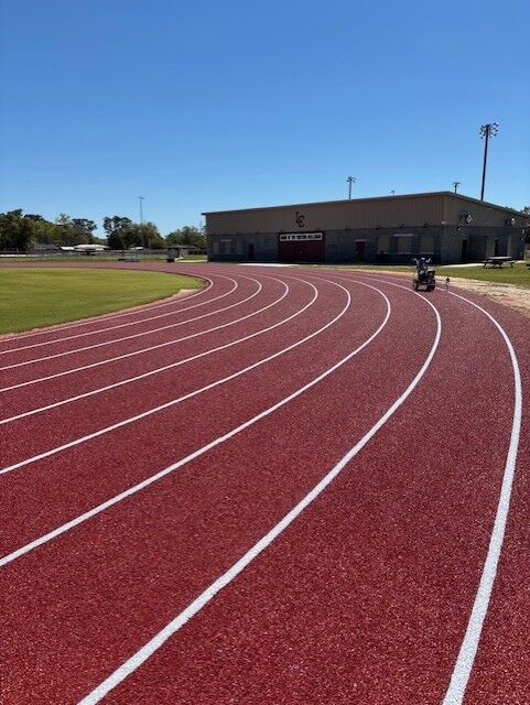 I'm pleased to announce the new surface at the Liberty County High School Track is finished.  Some of the outlying field event areas are still being worked on, but the track is finished.  We are so thankful for Representative Jason Shoaf and Senator Corey Simon for securing the legislative funding and Culpepper Construction/Roberts & Roberts for all the hard work in making this project a reality.  A very special thank you to Chuck and George Roberts for their continued efforts and generosity in making our facilities the best in Rural/1A Schools.  They have personally dropped by daily to check the progress and quality.  They have been instrumental in many projects for numerous years for the Liberty County School District and we could NOT do it without them!